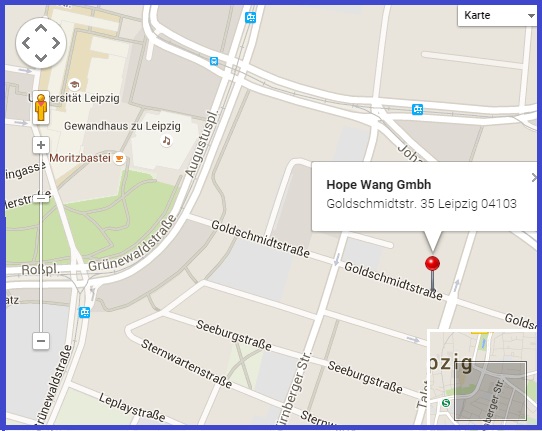 HOPEWANG GmbH GermanyADD:Goldschmidtstr. 3504103 LeipzigTel: 0049-341-600 4591Fax: 0049-341-600 4592Email: info@hopewang.de Directions: